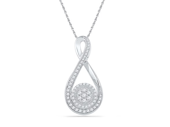 10K White Gold Diamond Accent Dia Cluster Infinity Necklace