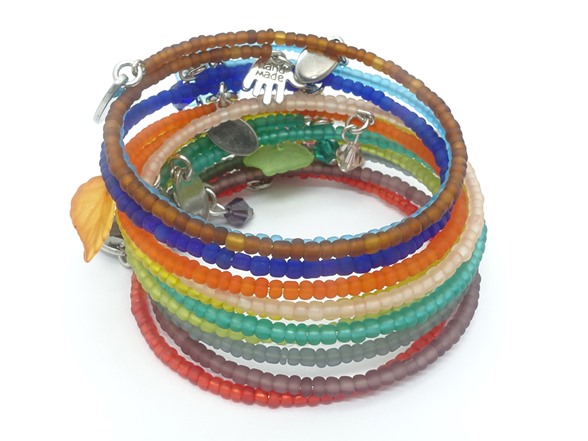 - (1) 12 Pc Colorful Bead Open Bracelets