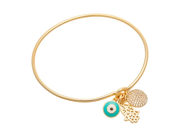 Bliss - NG342876G-Z - 18K Gold Hamsa Evil Eye Charm Bangle
