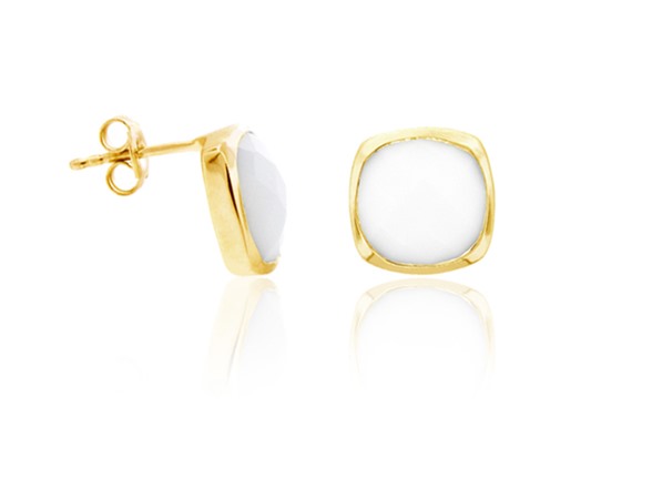 KenCraft KGE065GWA 18K Gold Over SS .925 White Agate 7cttw Earring