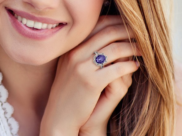 - (1) 4ct Oval Shape Crystal Tanzanite and Marcasite Halo Ring- Pick Size