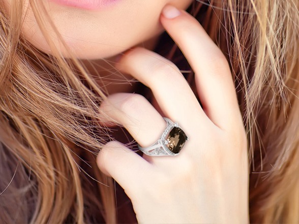 - (1) 5 1/3 Carat Cushion Cut Halo Style Smoky Quartz Ring- Pick Size