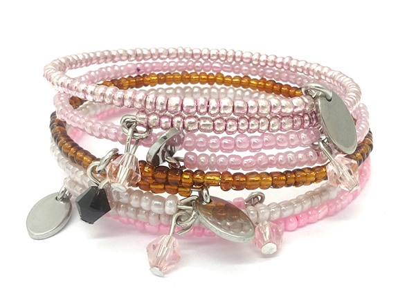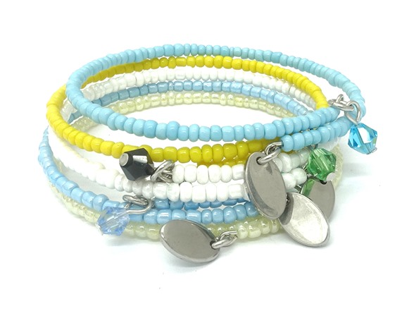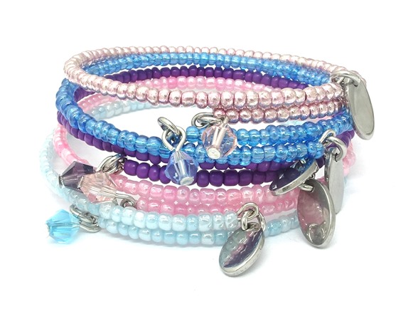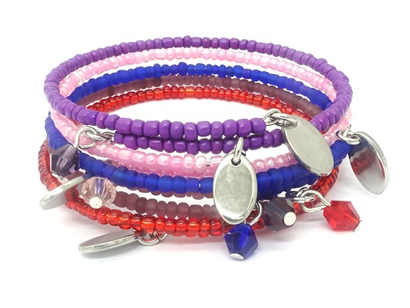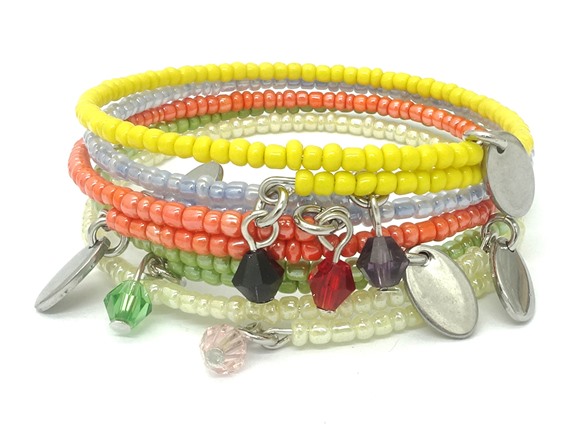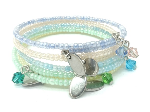 5 Pc Set Expandable Bead Bracelet with Bicone Crystal