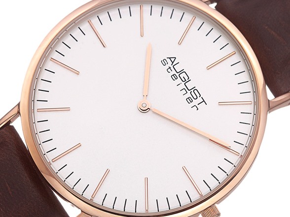 This men's August Steiner watch is a classy piece for any style. With a genuine leather strap, this ultra-slim watch features a matte dial and a Japanese quartz movement. This watch is sure to become your wrists new best friend.