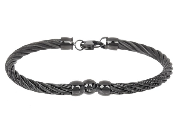 Blackjack Jewelry Brushed And Polished Black Stainless Steel Cable Bangle