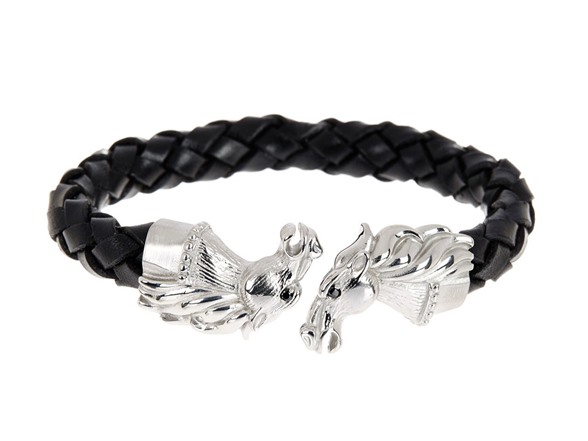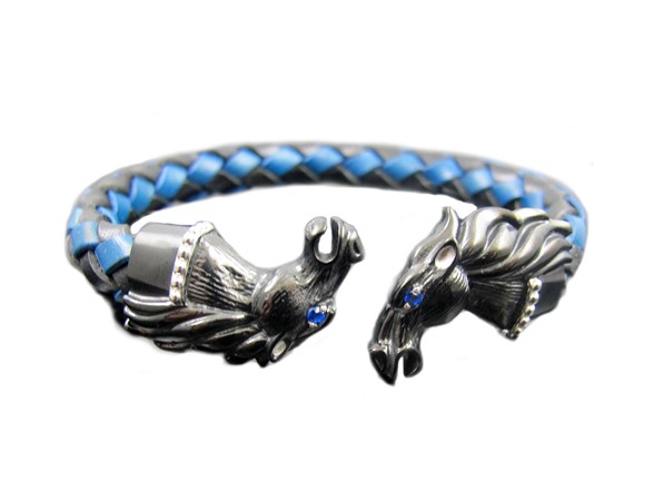 Blackjack Jewelry Genuine Leather & Stainless Steel Horse Bracelet