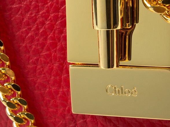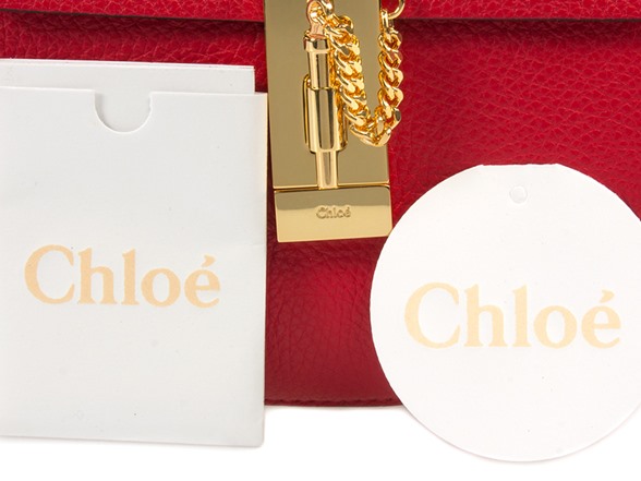 Compact in size and most efficient with its utilization of space, this luxurious plaid red Chloe Drew Shoulder Bag in size small is marvelously constructed utilizing high quality calfskin which has a grained texture. This bag proudly showcases a foldover top, rotating lock closure and gold-tone hardware. Supplemented with a gold-tone chain shoulder strap, internal patch pocket and off-white interior, this smoothly curved bag is versatile enough for both day and evening use. Measuring 7.5” H by 7.75” W by 2.75” D, this item ships with manufacturer’s documentation and a dust bag.