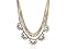 This fantasy necklace has 4 layers of chain and crystal. Each crystal bar measures 4 inches, and each crystal cluster measures 1 1/2 inches. Necklace is 18 inches long with a 2 inch extender. Necklace is crafted in gold plated brass and has a secure, lobster-claw clasp.