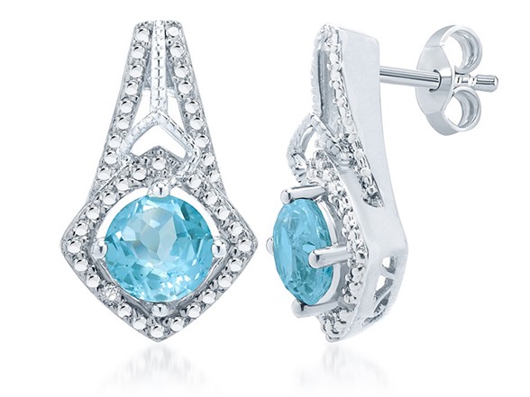 Kiran Created Blue Topaz And Diamond 4 Pc Set, 0.3ct