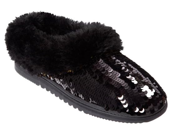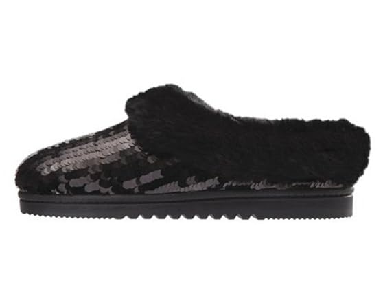 Go ahead—glam it up! These clog slippers feature large, shiny sequins and our highest level of comfort. Faux-fur trim adds a seasonal touch, and the durable sole means you can get out and be seen in these beauties. Signature by Dearfoams: Enhanced comfort, superior style