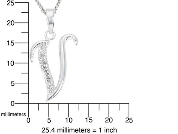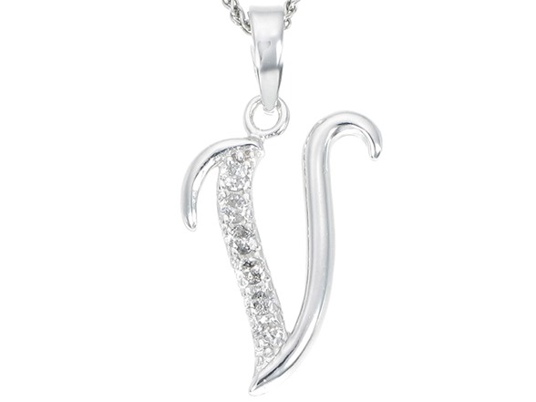 Silver Diamond Alphabet Pendant Letter V