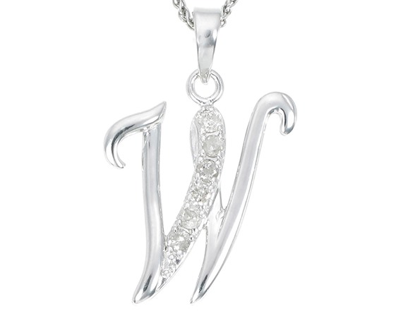 Silver Diamond Alphabet Pendant Letter W