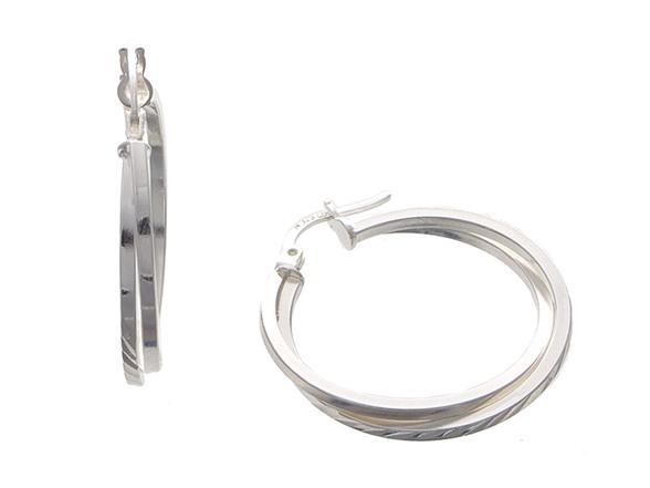 Bliss - NE236327-28 - Diamond Cut Sterling Silver 28mm Double Hoop Round Earring