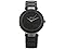 Stainless steel case with a polished black ceramic bracelet. Black dial with silvertone hands and index hour markers. Minute markers around the outer rim. Dial Type Analog. Quartz movement. Scratch resistant mineral crystal.
