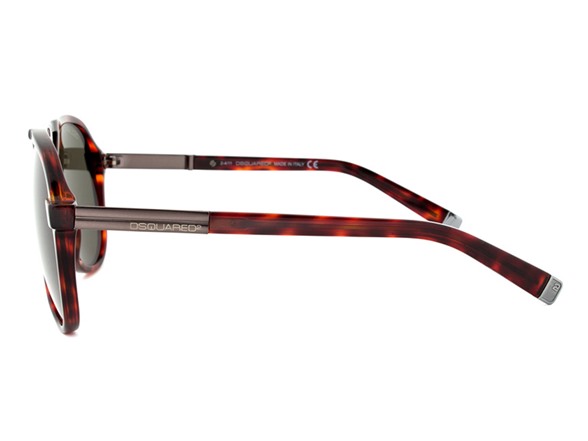 These DSquared DQ0070 54N Sunglasses feature a havana double bridge aviator frame with a gunmetal branded temple section. The green tinted lenses provide a perfect match for this model. Measuring 58-13-140mm, this item ships with its own case, lens cleaning cloth and manufacturer's tags.