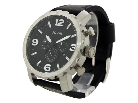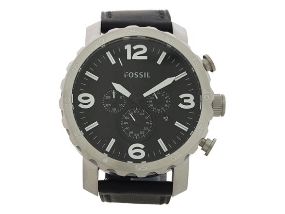 - (1) Fossil Men's JR1436 Nate Chronograph Black Leather Watch