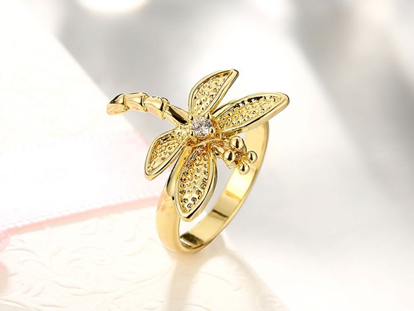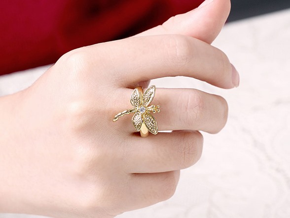 - (1) Gold Plated CZ Dragon Fly Ring- Pick Size