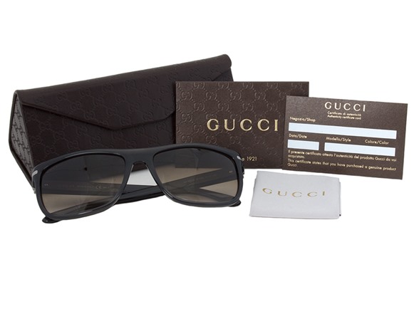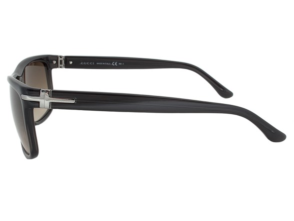 These Gucci GG 1027/S 4PY DB Sunglasses have a prolific 1960's inspired look and can be worn for virtually any instance. They showcase a dark grey soft rectangular full rim single bridge frame with a gunmetal cross which overlaps the hinges. The brown gradient lenses provide an air of distinction for this superbly unassuming model. Measuring 57-17-140mm, this item ships with its own distinctive case, lens cleaning cloth and manufacturer's documentation.