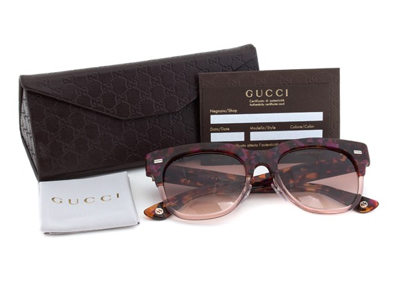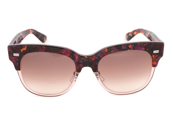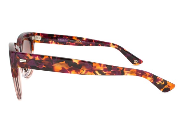 Exploding with color, these Gucci GG 3744/S XDC/5F Sunglasses are anchored by their havana semi-rimmed single bridge oval frame which also has a translucent crystal champagne lower frame. The gradually tapering paddle arms and brown gradient lenses keep these designer shades in complete focus. Measuring 52-19-145mm, these designer sunglasses are shipped with their own distinctive case, lens cleaning cloth and manufacturer's tags.