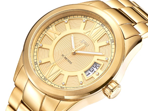 - Gold dial with Roman numeral, Date and 9 genuine diamonds marking the hours