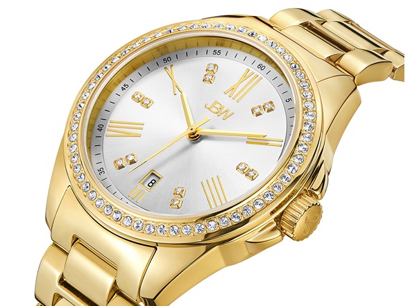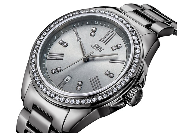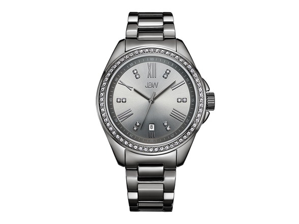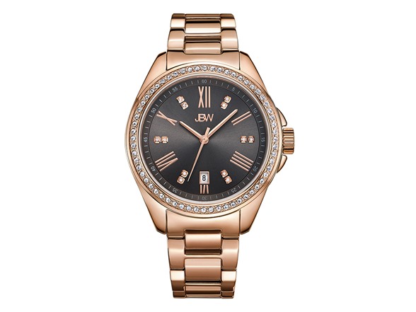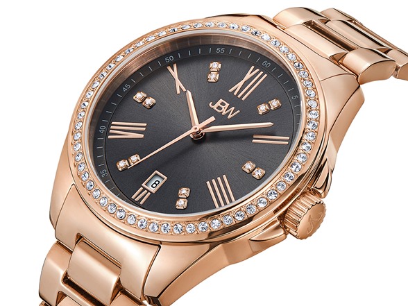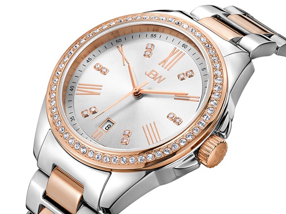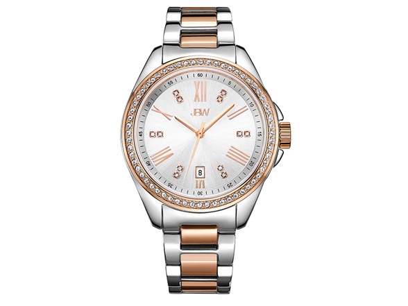 - Silver dial with 12 genuine diamonds, rose gold accented Roman Numerals and date
