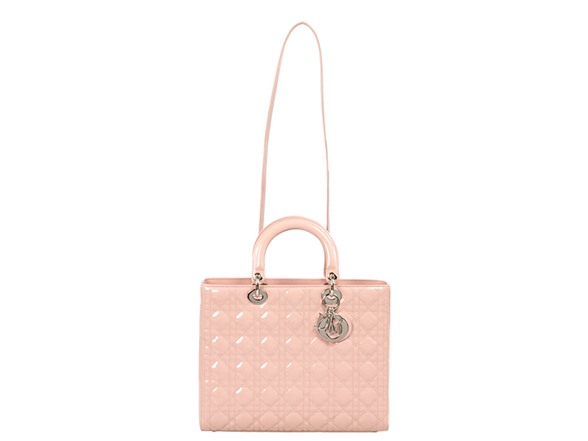 (1) Lady Dior Patent Leather Bag | Pink with Silver Hardware | Large
