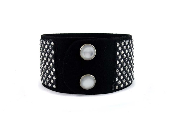 Leather Black and White Swarovski Elements Crystal Bracelet