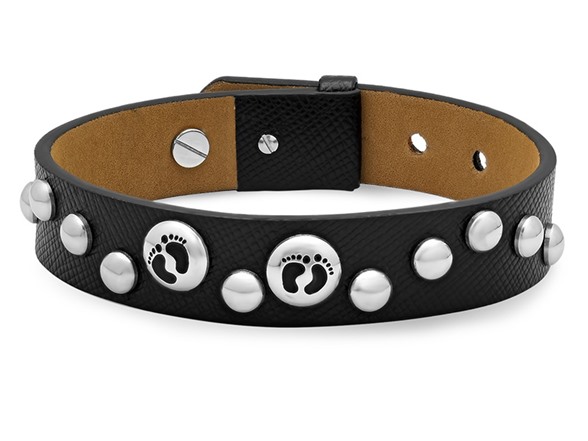 808-057-B Hang Ten Men's Genuine Black Leather Adjustable Bracelet With Stainless Steel Hang Ten Logo Accent And Button Clasp