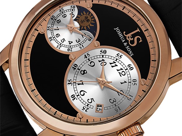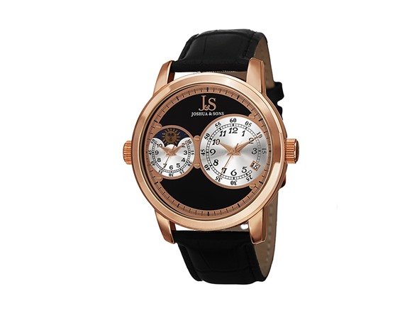 Joshua & Sons Men's Dual Time Genuine Leather Strap Watch JS87RG