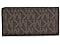 Flapover with snap closure. Detachable crossbody strap with a drop length of approximately 24 inches. Back features large exterior slip pocket. Interior features eight credit card slots, two bill pockets, and center zip pocket. Two separate slip pocket under flap. Gold tone hardware details. Dimensions: 8 inches x 4 inches x 1.5 inches