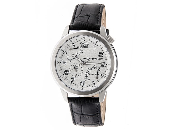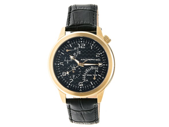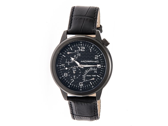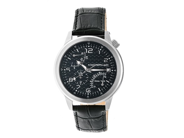 Morphic M52 Series Mens Dual Time Zone Leather Strap Watch with Date