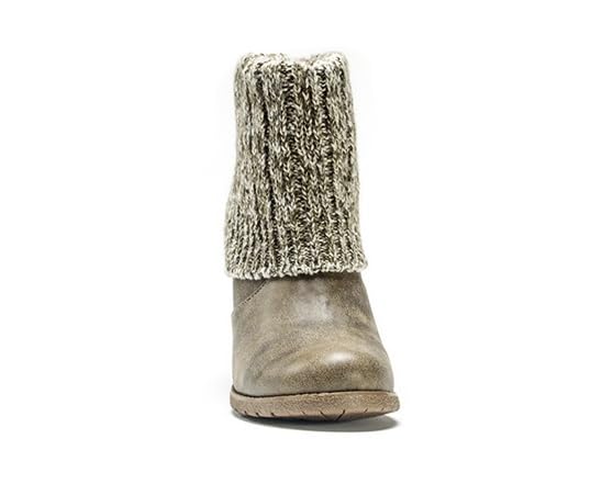 Dive into fashion this fall by picking up a pair of our Women’s MUK LUKS Chris Boots. The Chris Boot is 100% PU Faux Leather with a beautiful ribbed acrylic knit cuff gently folded over the boot. Two decorative buttons rest on the side of the cuff completing the ensemble. The Chris has a soft 100% Polyester Microfiber lining and rests on a 3.5 inch chunky heel. The Chris is available in our Taupe, Light Brown, and Grey colors in whole sizes 6-10. Wipe with a damp cloth to clean, no bleach, and lay flat to dry. Made in China.