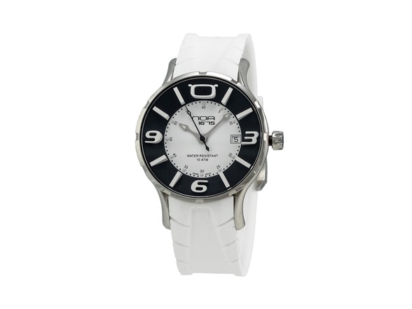 NOA -Lady Quartz 40mm Black Dial, White Strap Watch - IR008-W