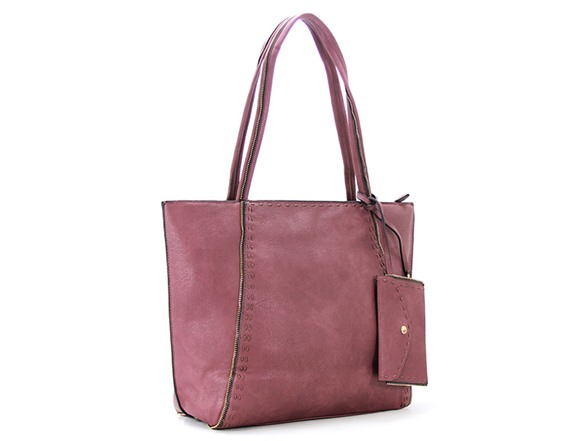 Our newest RM release is the Jordan tote that's effortlessly classic and straight forwardly bold in detail! The tote features a classic tote silhouette with an edgy twist! It's decorated with a gold zipper lining and double stitch detail to satisfy your inner biker chick! Your biker posse can always use a plus one, it comes with an attached mini wallet with gold zipper lining.