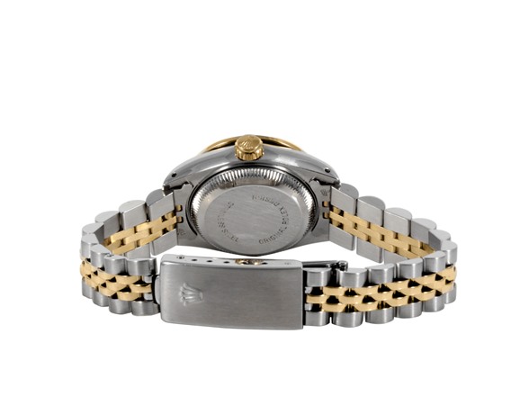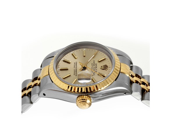 Rolex Ladies Two Tone Datejust Watch w/ Champagne "Tapestry" Index Dial