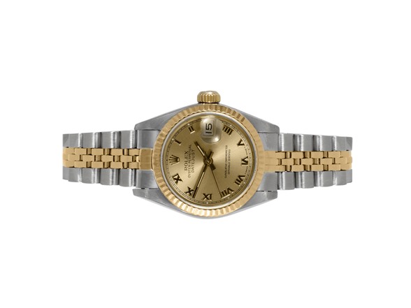 Rolex Ladies Two Tone Datejust Watch w/ Champagne Roman Dial
