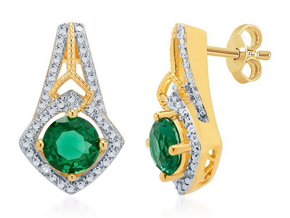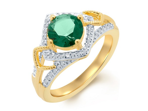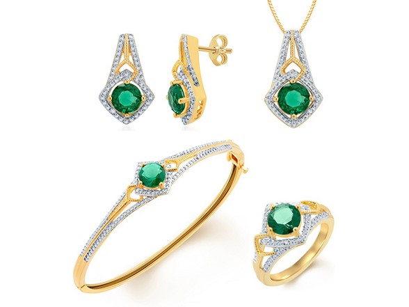 Kiran Simulated Emerald And Diamond 4 Pc Set, 0.3ct