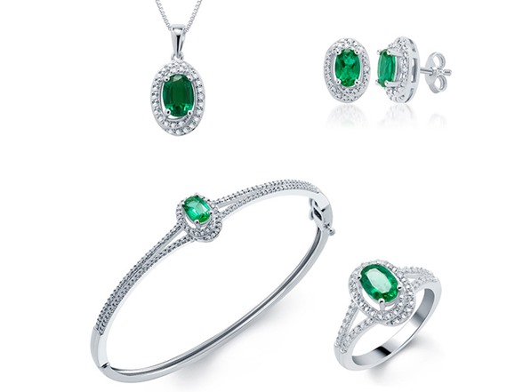 Kiran Simulated Emerald And Diamond 4 Pc Set, 0.4ct