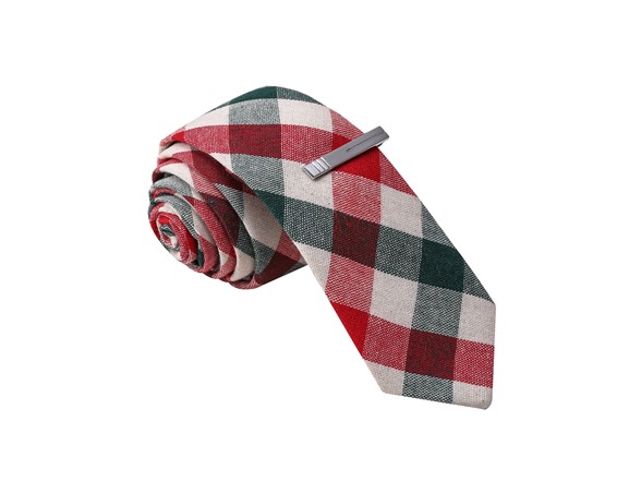 Skinny Tie+Tie Clip - Red & Green