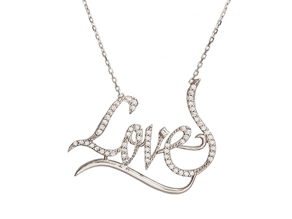 Sterling Silver CZ Love Necklace