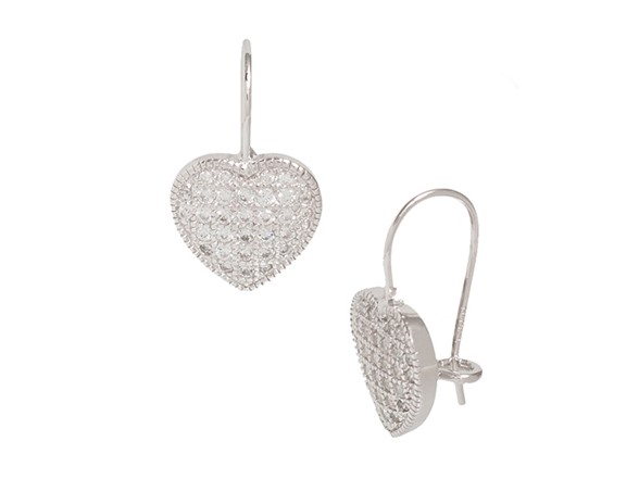 Sterling Silver Pave Heart Drop Earrings