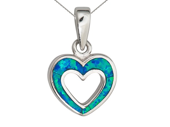 Sterling Silver Rhodium Created Opal Heart 18" DC