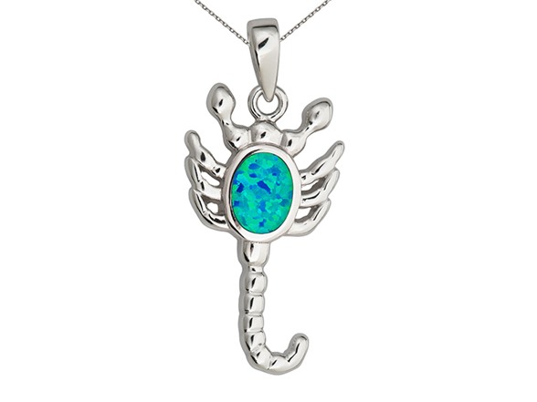 Sterling Silver Rhodium Created Opal Scorpion 18" DC