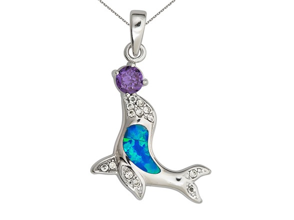 Sterling Silver Rhodium Created Opal Seal Amethyst