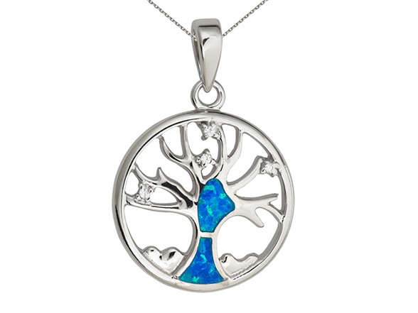 Sterling Silver Rhodium Created Opal Tree of Life
