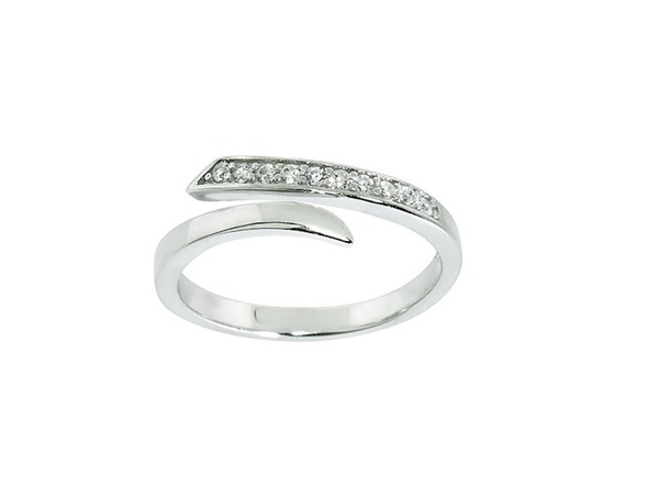 (1)Diamonere Sterling Silver With Open Ended Midi Ring With CZ Accents