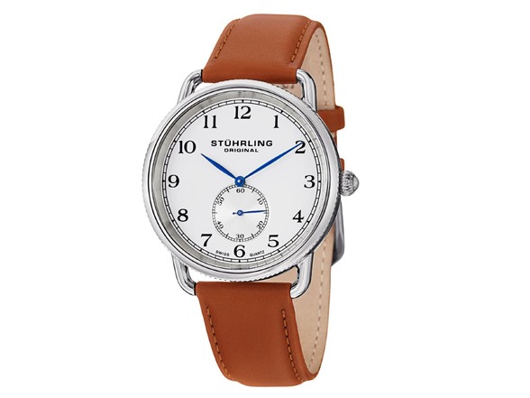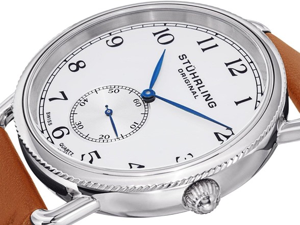 Simple, elegant, and graceful design are hallmarks of this beautiful Stuhrling Original watch. The lines evoke the classic Bauhaus watch design, evoking the IWC Portuguese, Nomos Glashütte, and Stowa Antea.