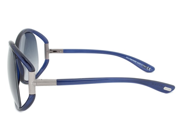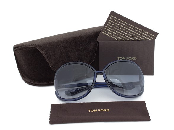These Tom Ford TF78 90B Sunglasses are a full blown retro revival with their royal blue oversized full rim single bridge oval frame. The gold toned grooved hinges side cutouts and dark grey lenses are pivotal features of this designer sunglass model which is sure to make a splash. Measuring 61-16-125mm this item ships with a case lens cloth demo lenses and manufacturer’s documentation.
