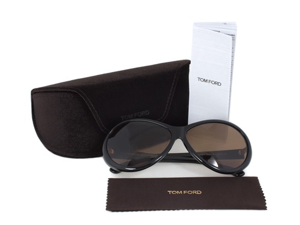 Smooth and refined these Tom Ford FT0202 01J Sunglasses radiate a black full rim single bridge oversized oval tear drop frame. Providing a definitive design edge Geraldine sports brownish grey lenses and silver toned 'T' branding on the black paddle arms. Measuring 65-13-120mm this item ships with its own case lens cloth and manufacturer's documentation.
