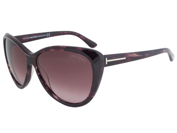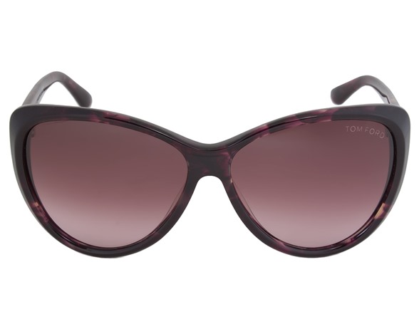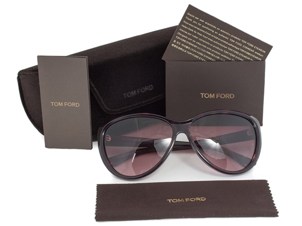 These Tom Ford TF230 83T Sunglasses are well endowed with an oversized cateye shaped full rim single bridge spotted dark violet shiny frame. Named Malin the violet gradient lenses tapering paddle arms and silver toned T" branding on the temples and ear tips consummate this stellar design. Measuring 61-13-135mm this item ships with its own distinctive case lens cleaning cloth and designer's documents. "